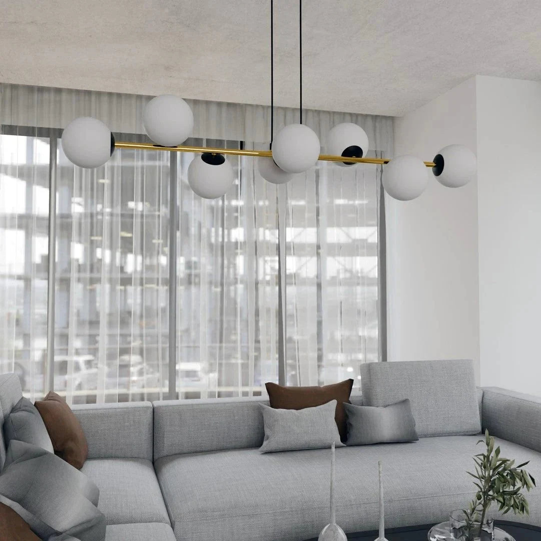 De GRAVITY hanglamp combineert minimalistische lijnen met glamoureuze gouden accenten voor een verfijnde, eigentijdse uitstraling. Deze elegante lamp met zwarte behuizing, gouden details en witte kappen past perfect in moderne of klassieke interieurs. Ideaal voor woonkamers, eetruimtes of entrees die een elegant en ingetogen middelpunt verdienen.