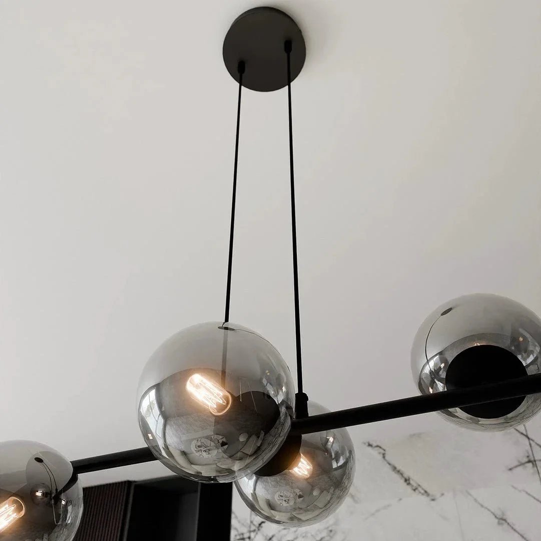 De ROSSI 6 BLACK Graphite is een tijdloze hanglamp die minimalistische lijnen combineert met eigentijdse elegantie. Deze veelzijdige lamp met zes fittingen brengt stijlvolle en gelijkmatige verlichting in uw eetkamer, keuken of woonkamer. Het gepoedercoate stalen frame in zwart harmonieert prachtig met de grafietkleurige glazen kappen, waardoor een verfijnde sfeer ontstaat die perfect past bij moderne interieurs.