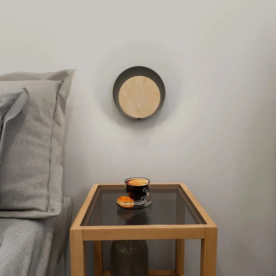 CIRCLE is een moderne Scandinavische wandlamp met overlappende geometrische ringen en warme multiplex accenten. Het gepoedercoate stalen frame in zwart voegt sculpturaal karakter toe en biedt praktische verlichting voor woonkamers, slaapkamers of gangen.