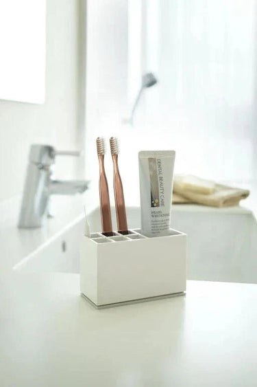 Deze elegante Yamazaki tandenborstelhouder brengt rust in jouw badkamer. Het strakke witte ontwerp houdt alle tandenborstels netjes op hun plaats en zorgt voor een opgeruimde, stijlvolle uitstraling.