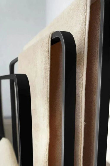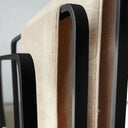 Het slanke frame van zwart gelakt staal past perfect in moderne interieurs. Het ruimtebesparende ontwerp maximaliseert de functionaliteit zonder veel plaats in te nemen.