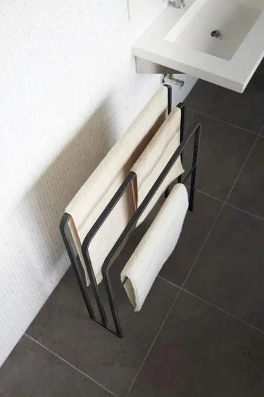 Yamazaki Tower handdoekenrek voor de badkamer, 3 stangen - zwart
