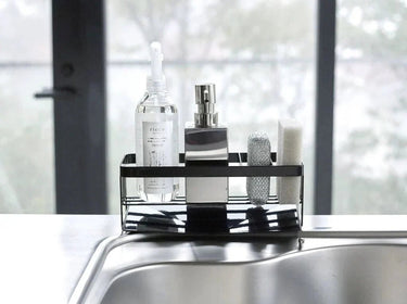Deze slimme sponshouder transformeert je gootsteen van rommelig naar opgeruimd. Het strakke zwarte design past perfect in jouw moderne keuken en zorgt ervoor dat alles zijn vaste plek heeft.