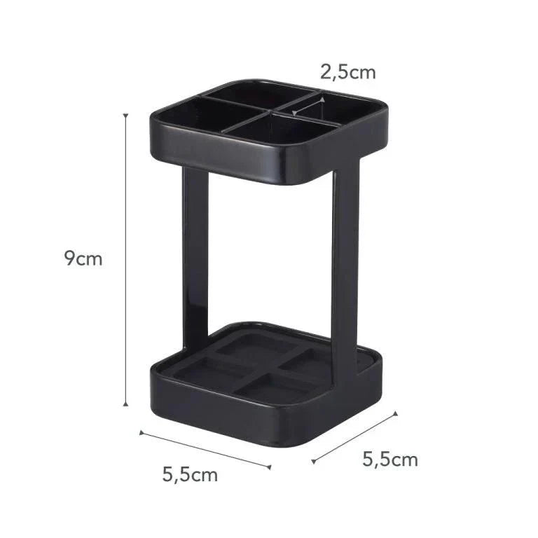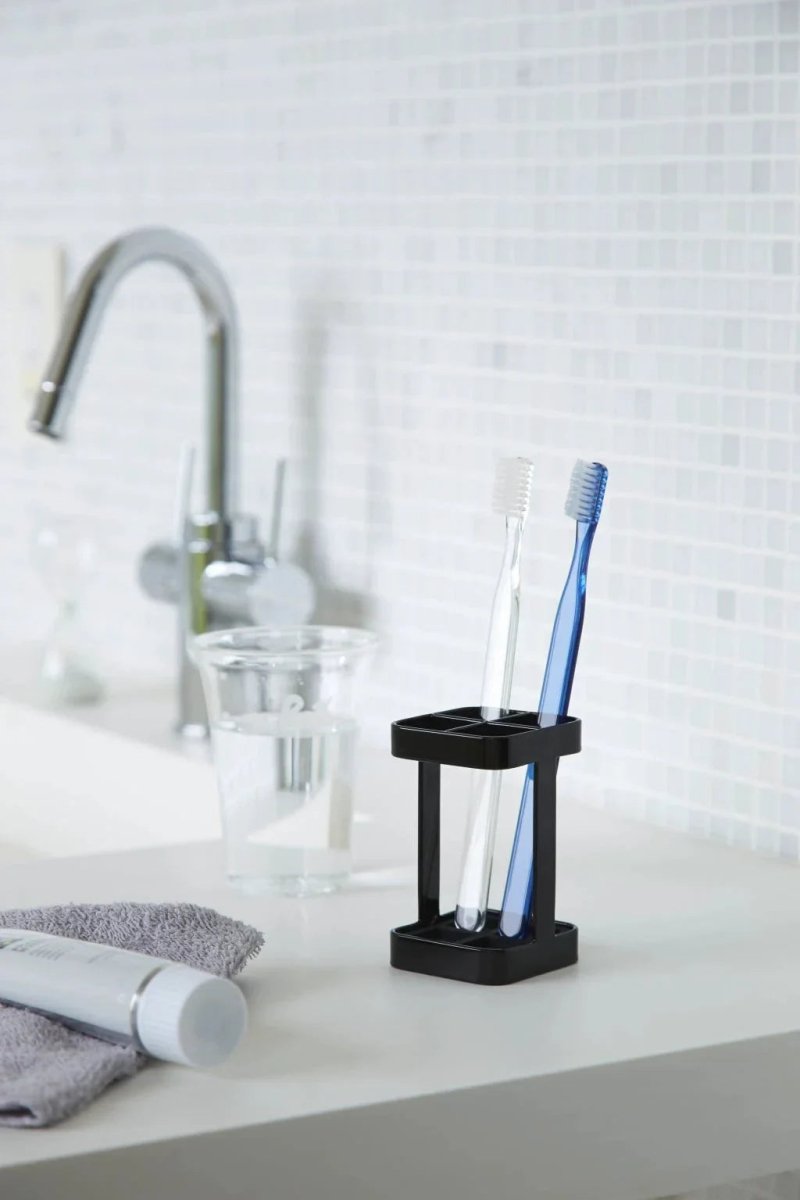 Deze stijlvolle tandenborstelhouder van Yamazaki brengt rust en orde in jouw badkamer. Met zijn compacte formaat en elegante zwarte uitstraling past hij perfect bij moderne interieurs. Je tandenborstels staan netjes rechtop en hygiënisch gescheiden.